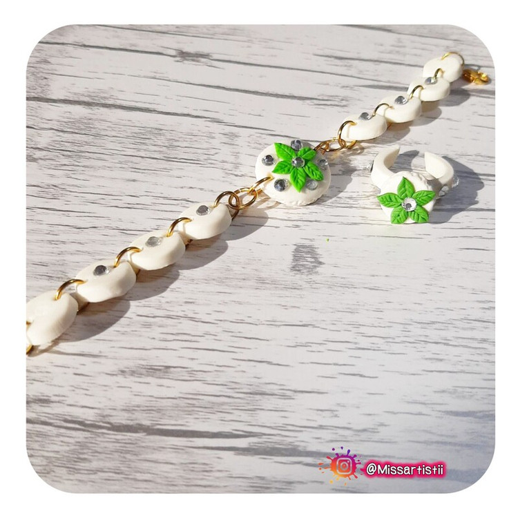 سرویس دستساز ۵ تکه یک مجموعه هنری و منحصر به فرد است . مجموعه شامل مواردی مانند **گردبند /دستبند/ی جفت گوشواره/انگشتر ** میشود وست جذابی برای دختران نوجوان و جوان می باشد.