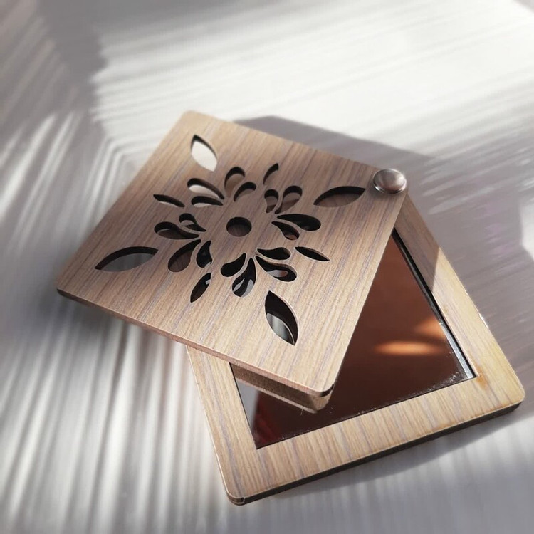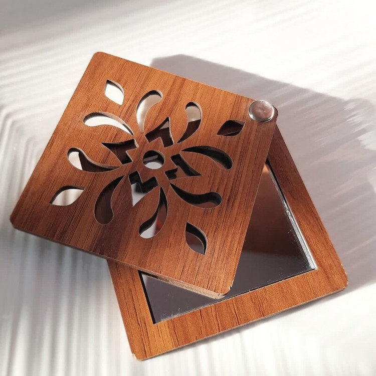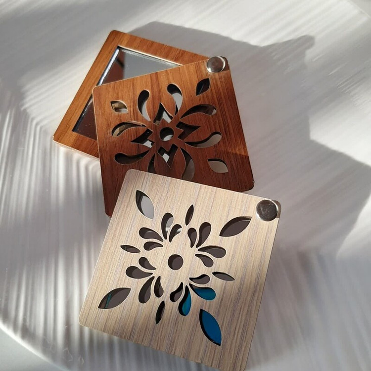 آینه چوبی جیبی با طراحی طبیعی و قابل حمل، مناسب برای استفاده شخصی در سفر، مهمانی یا روزمره است. این آینه با قاب چوبی دستساز و دوام بالا، ترکیبی از زیبایی و کاربردی را ارائه میدهد.