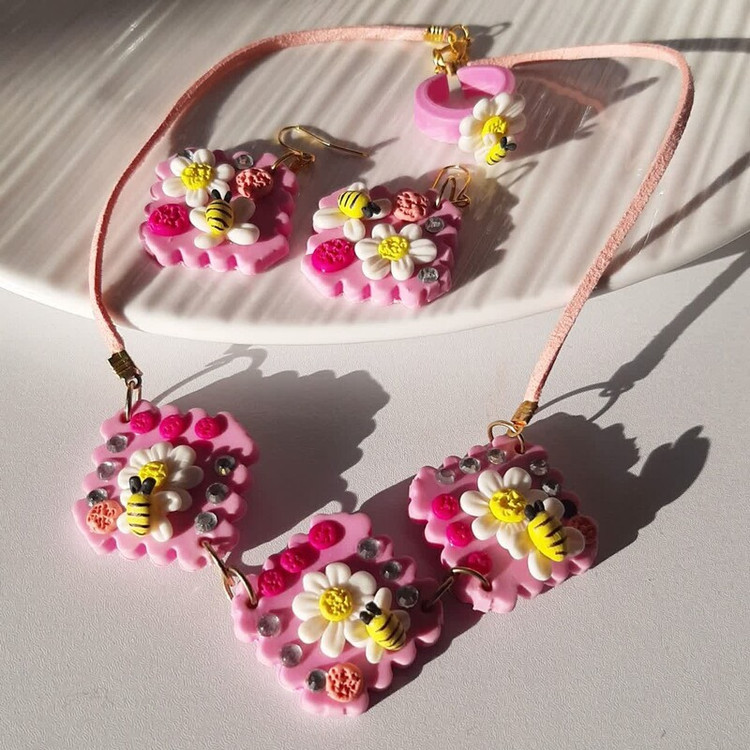 سرویس گردنبند فانتزی پلیمری با طراحی رنگارنگ و منحصر به فرد، از جنس خمیر پلیمری نشکن و ضدآب ساخته شده است. این مجموعه با طرح خلاقانه برایکودکان و نوجوانان مناسب بوده و به عنوان اکسسوری شاد و چشمنواز استفاده میشود.