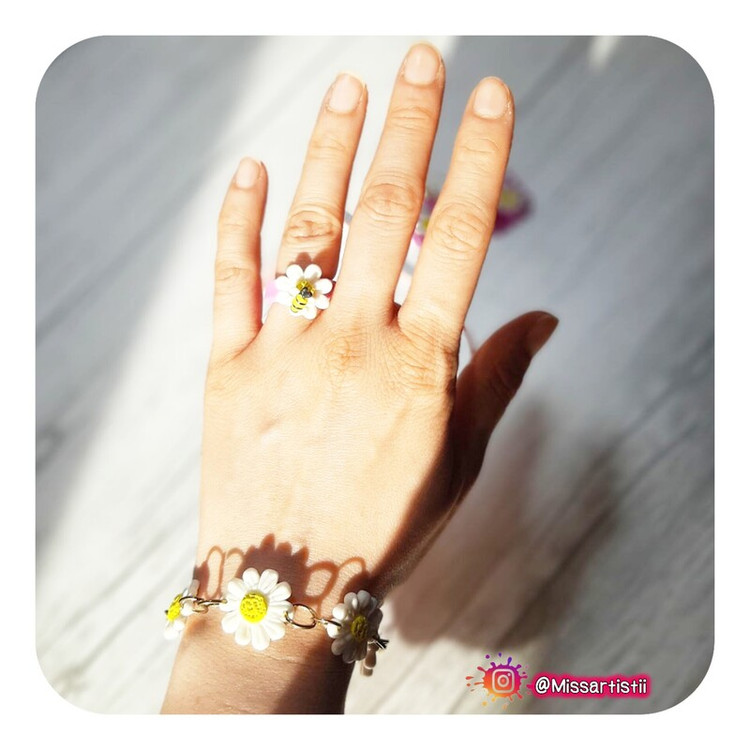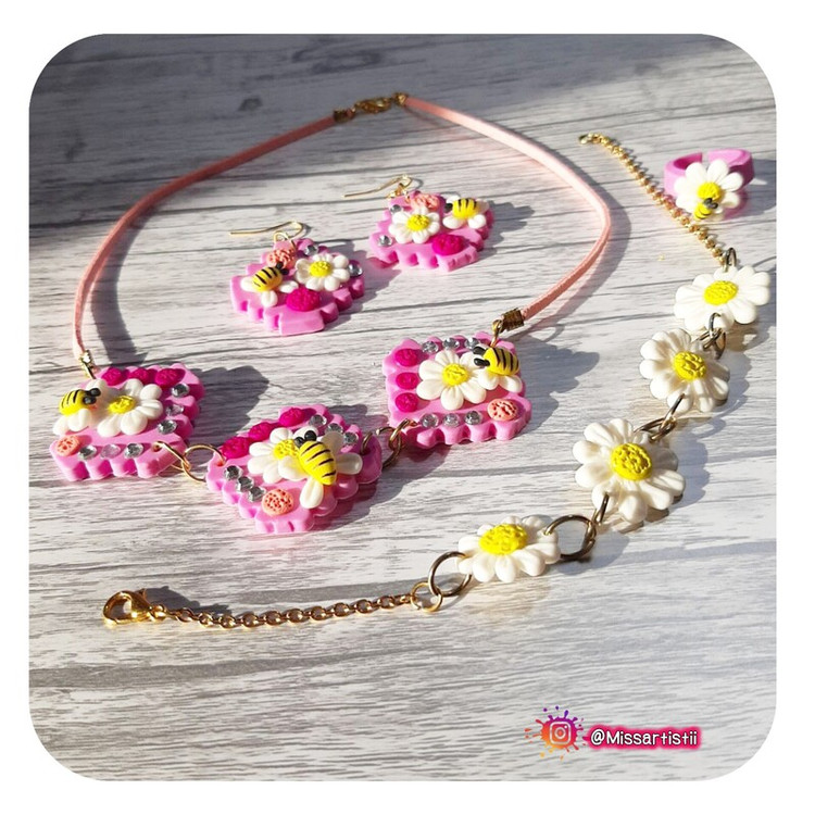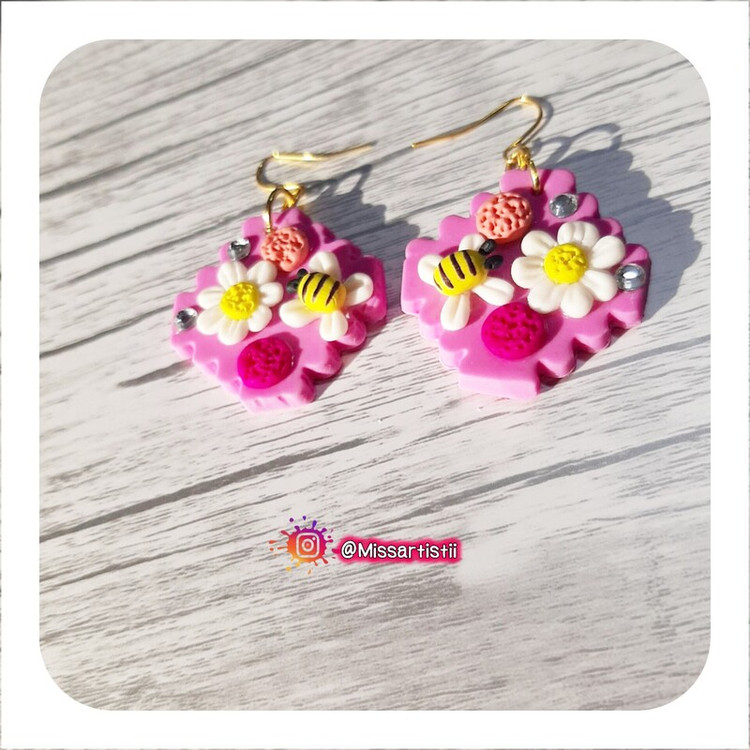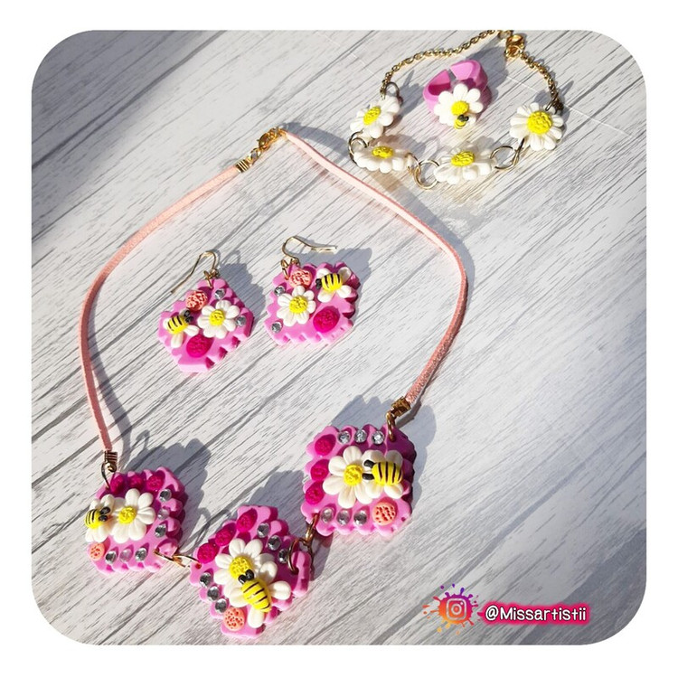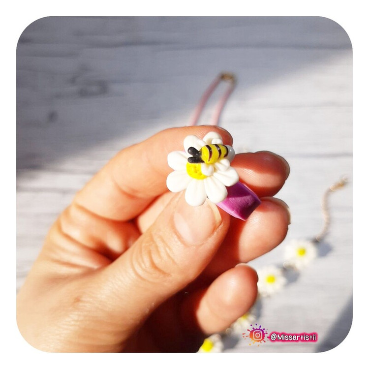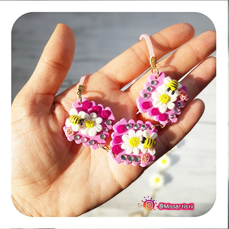 کار کاملا دستساز و ساخته شده با خمیر پلیمری نشکن و ضدآب با طراحی گل و زنبور بسیار زیبا و بهاری