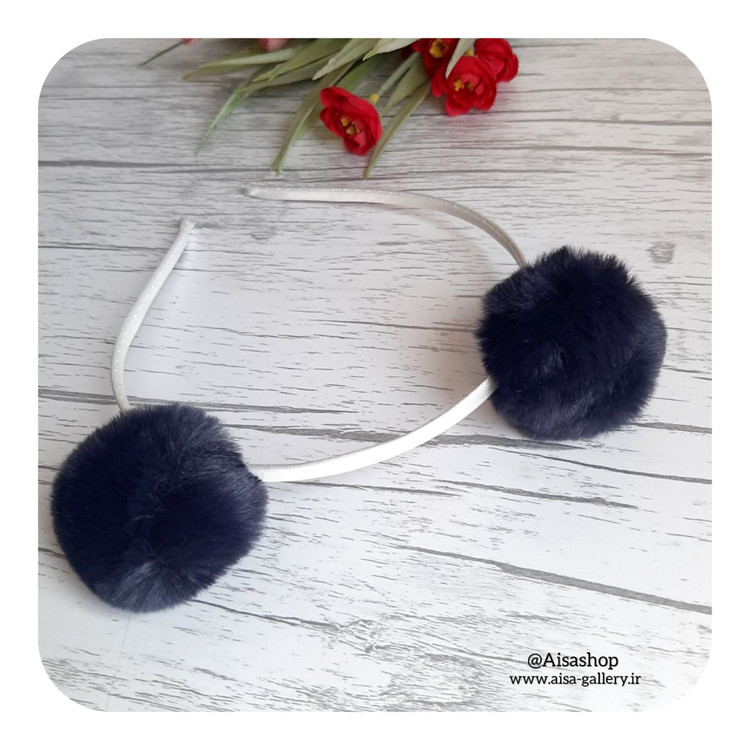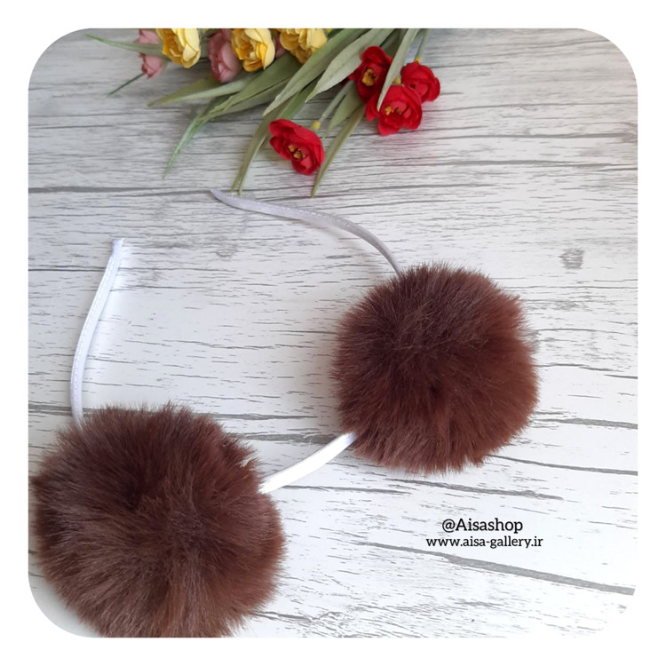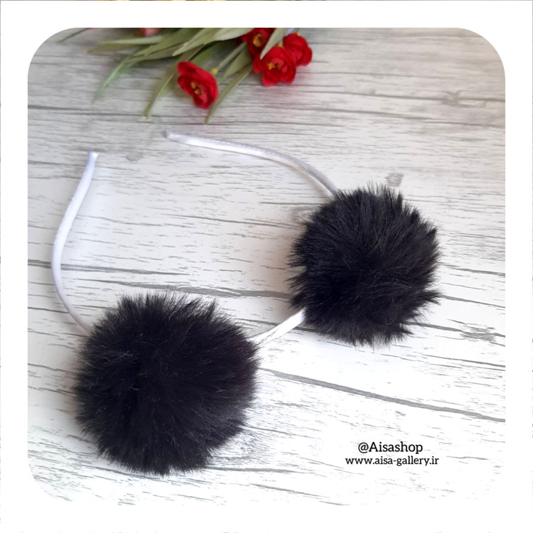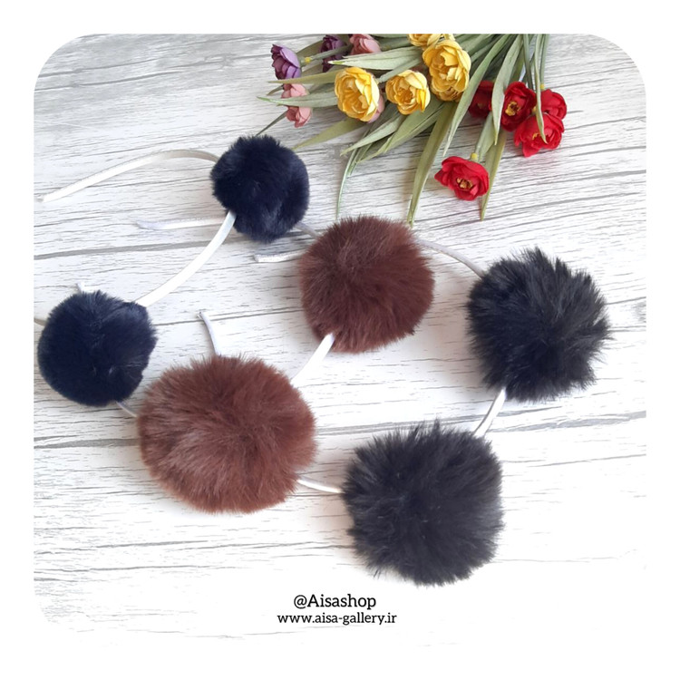 📍تل پوم پومی جنس بدنش فلزیه و با پارچه ی نازکی روکش شده 📍دو تا پوم پوم روی تل نصب شده 📍پوم پوم رنگ مشکی و سرمه ای کمی کوچیکتر ه ولی قهوه ای بزرگتر