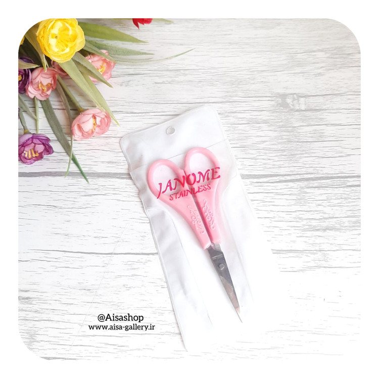 قیچی ابرو ژانومه دسته صورتی سرکج