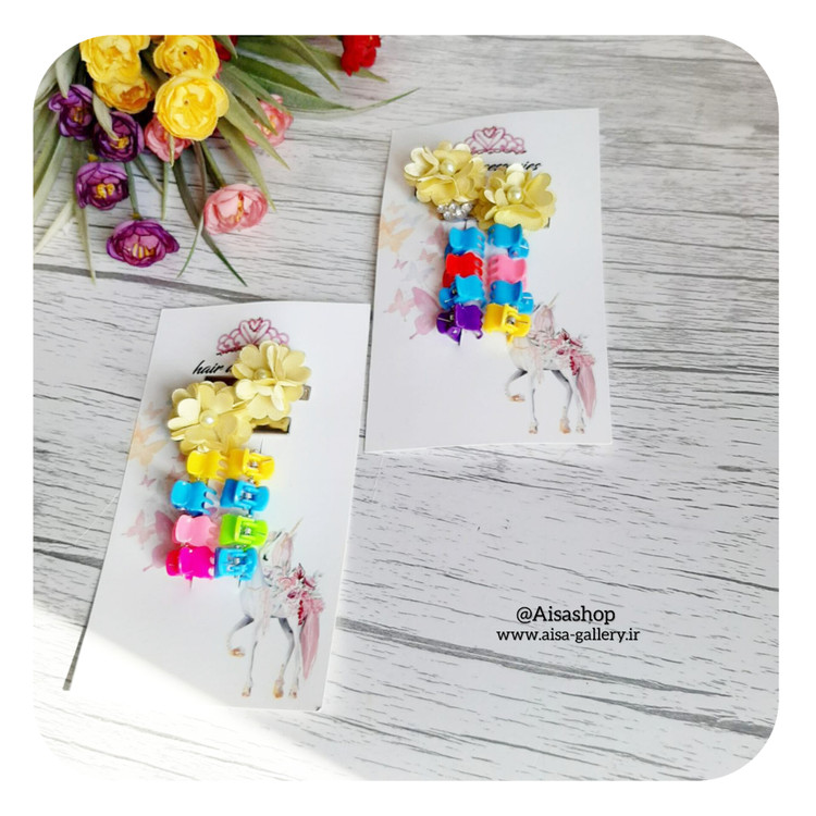 پک گیره انبری فانتزی و کلیپس ریز که برای آرایش مو استفاده میشود. این پک با رنگهای شاد، برای کودکان و نوجوانان مناسب است.