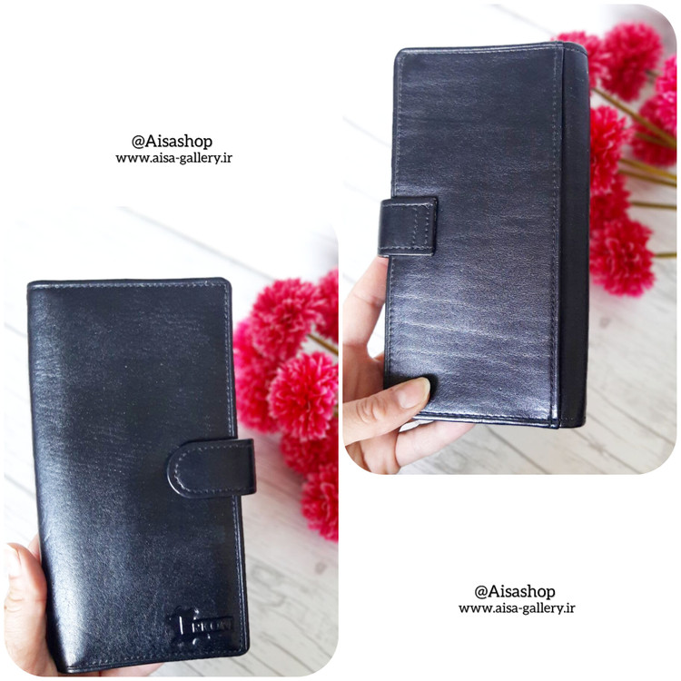 کیف پول پاسپورتی مردانه مدل دکمه دار چرمی