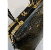 کیف دستی چرم زنانه طرح کروکودیل یراق طلایی