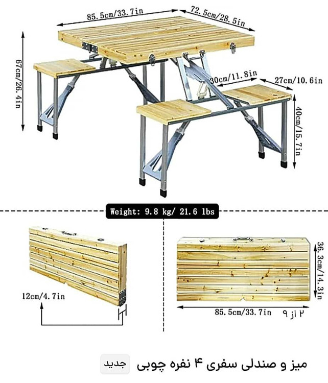 اجزا: ۱ عدد میز + ۴ عدد صندلی تاشو