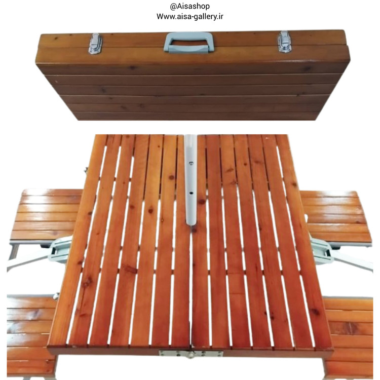 ست میز و صندلی تاشو چوبی انتخابی کاربردی و شیک برای سفر، پیکنیک، کمپینگ و استفاده در فضای باز است.
