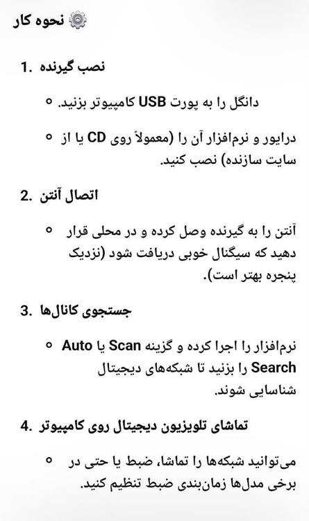 گیرنده دیجیتال USB مدل DVB-G یک ابزار کاربردی برای دریافت شبکههای تلویزیونی دیجیتال روی کامپیوتر یا لپتاپ است. این دانگل کوچک بهراحتی به پورت USB متصل میشود و امکان تماشای شبکههای تلویزیونی HD و SD را بدون نیاز به اینترنت و فقط با نصب آنتن فراهم میکند.