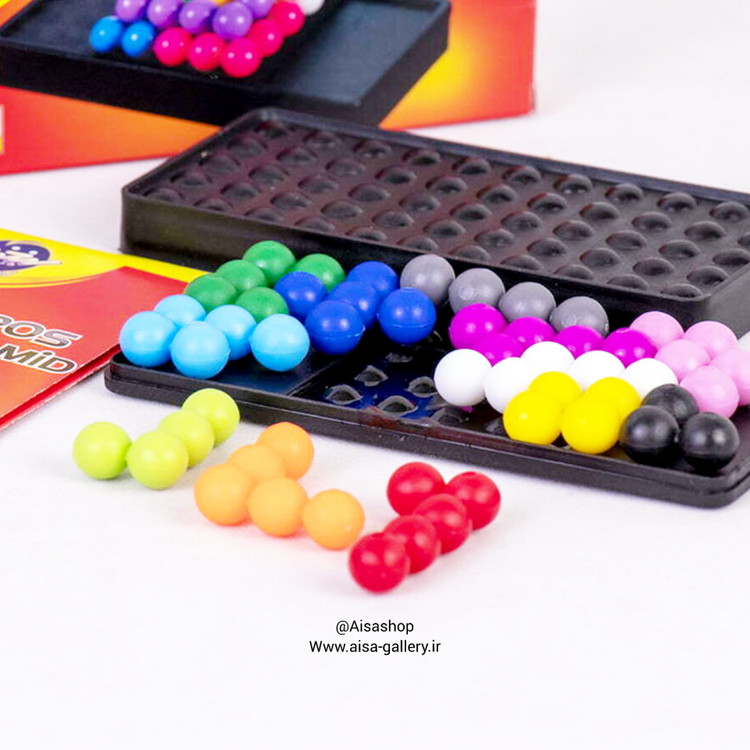 · محتوای جعبه: صفحه بازی هرمی، مهرههای رنگی، تاس ویژه و راهنما