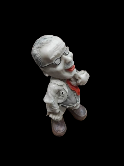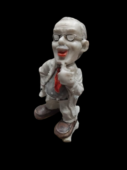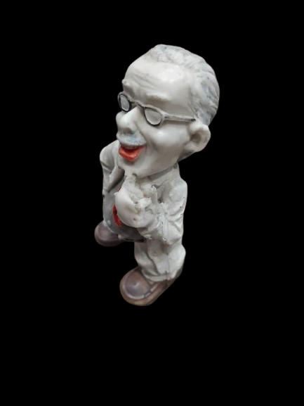 یک مجسمه دکوری با طراحی کاریکاتوری (سر بزرگ نسبت به بدن) که پیرمردی خندان با عینک و سبیل را نشان میدهد. این فیگور از جنس رزین یا پلیاستر بوده و برای تزئینات میز کار و کلکسیونهای فانتزی کاربرد دارد.