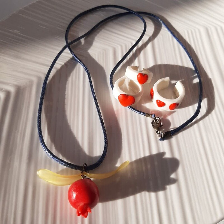 📍مجموعه ی 4 عددی شامل : 🌿3 عدد انگشتر چانکی خمیری نشکن 🌿1 عدد گردنبند انار