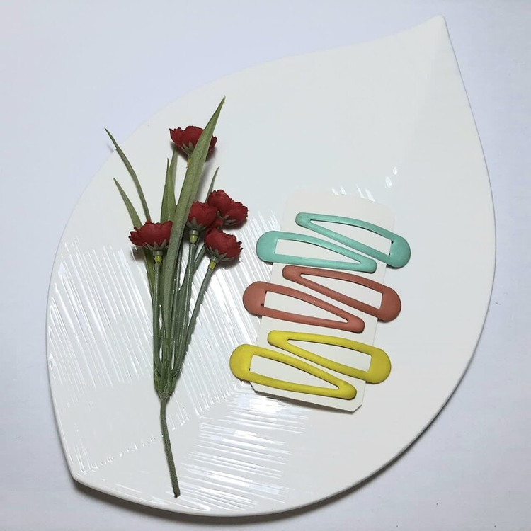 گیرههای تقتقی جفتی در طرح شمعی با رنگهای شاد و جذاب. هر بسته شامل ۳ جفت (۶ عدد) گیره شمعی است.